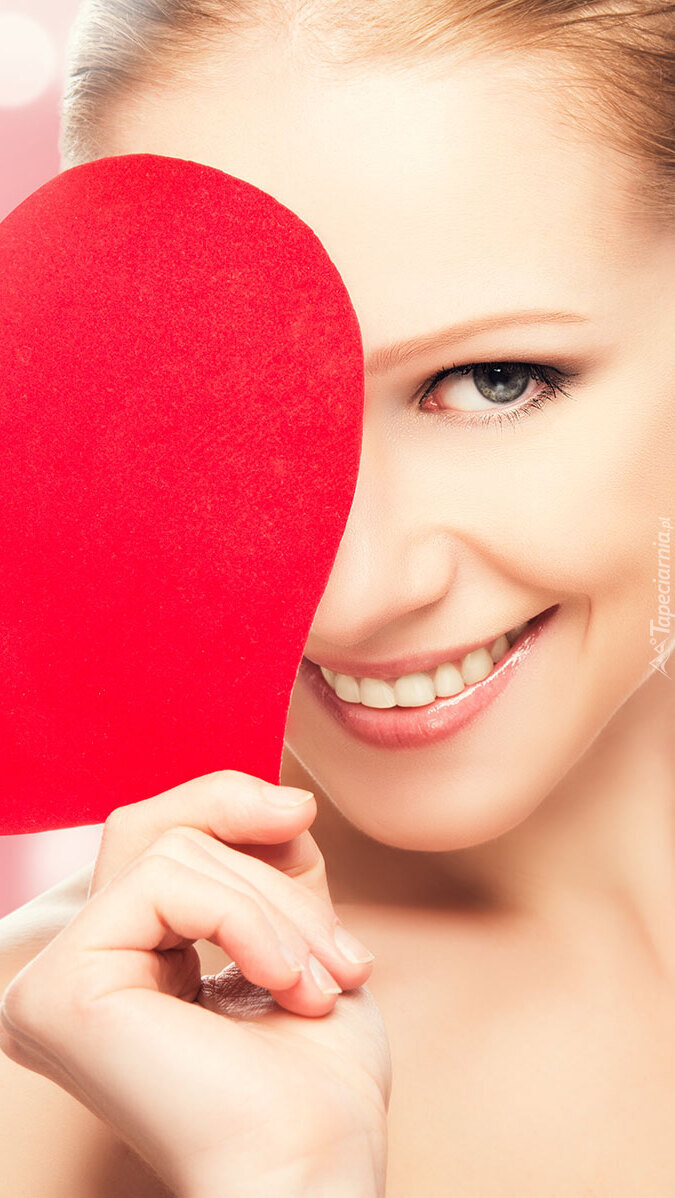 Edytor tapety: Uśmiechnięta kobieta z sercem w dłoni