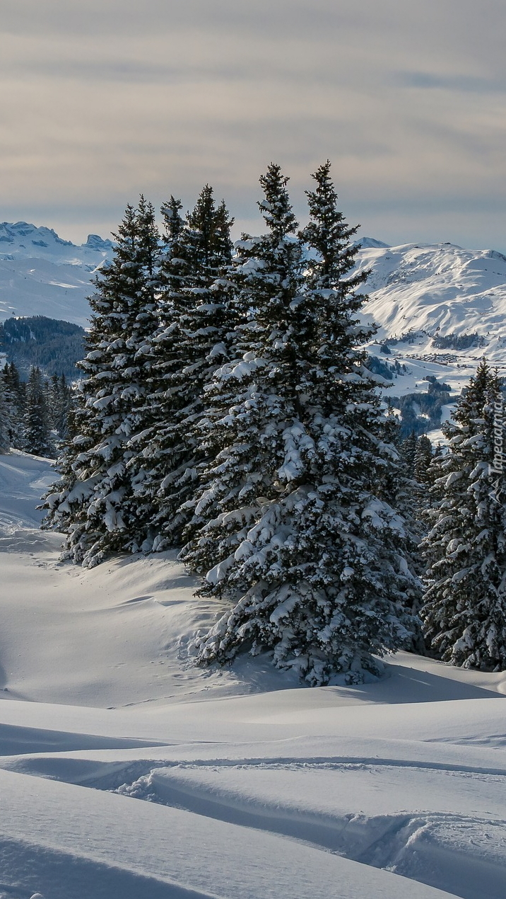 Edytor tapety: Ośnieżone świerki w zaspach