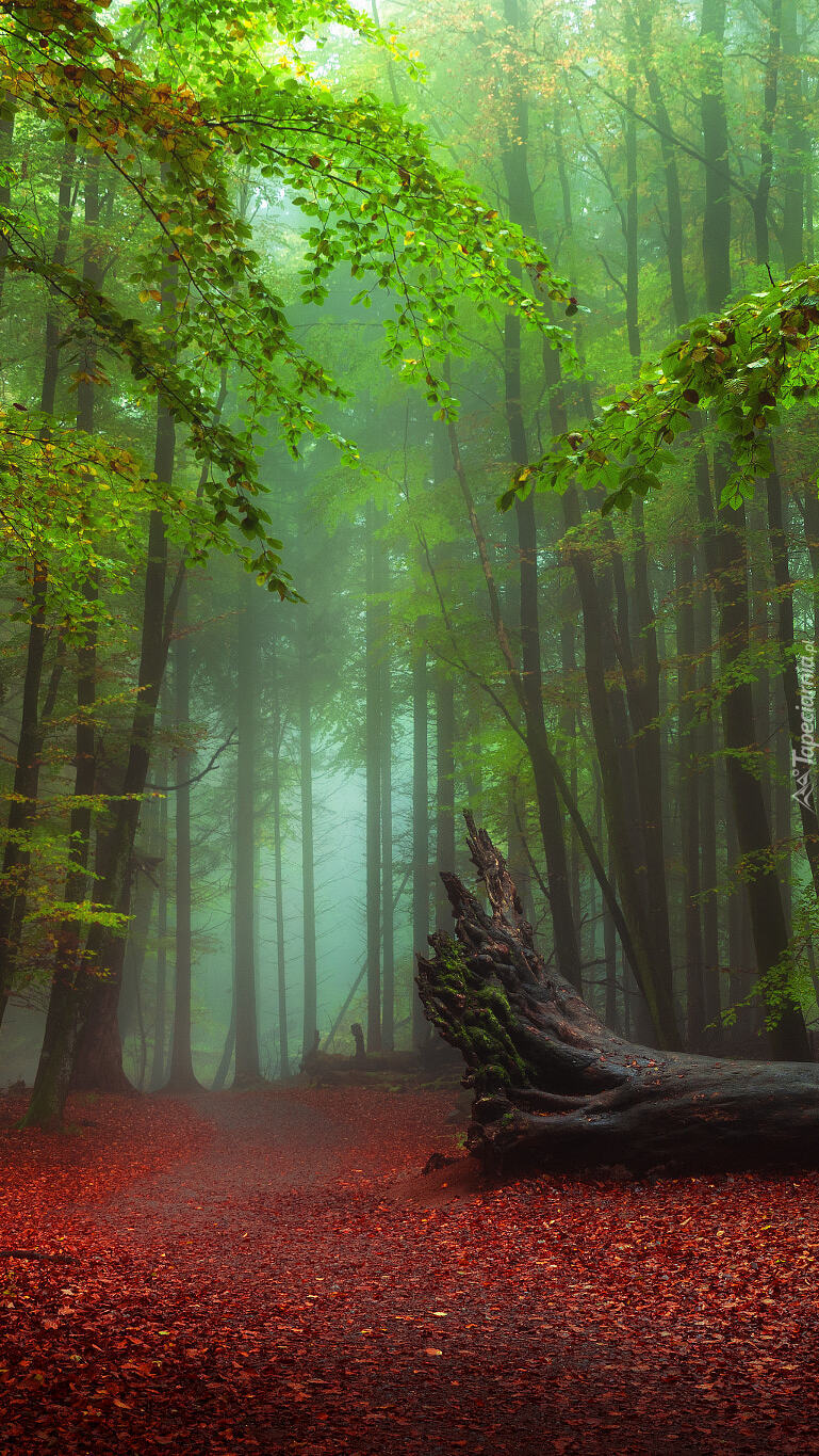 Edytor tapety: Powalone drzewo na leśnej drodze