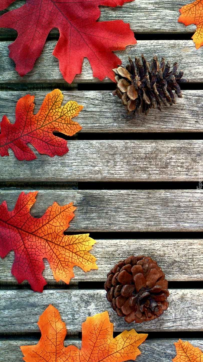 Edytor tapety: Liście dębu i szyszki