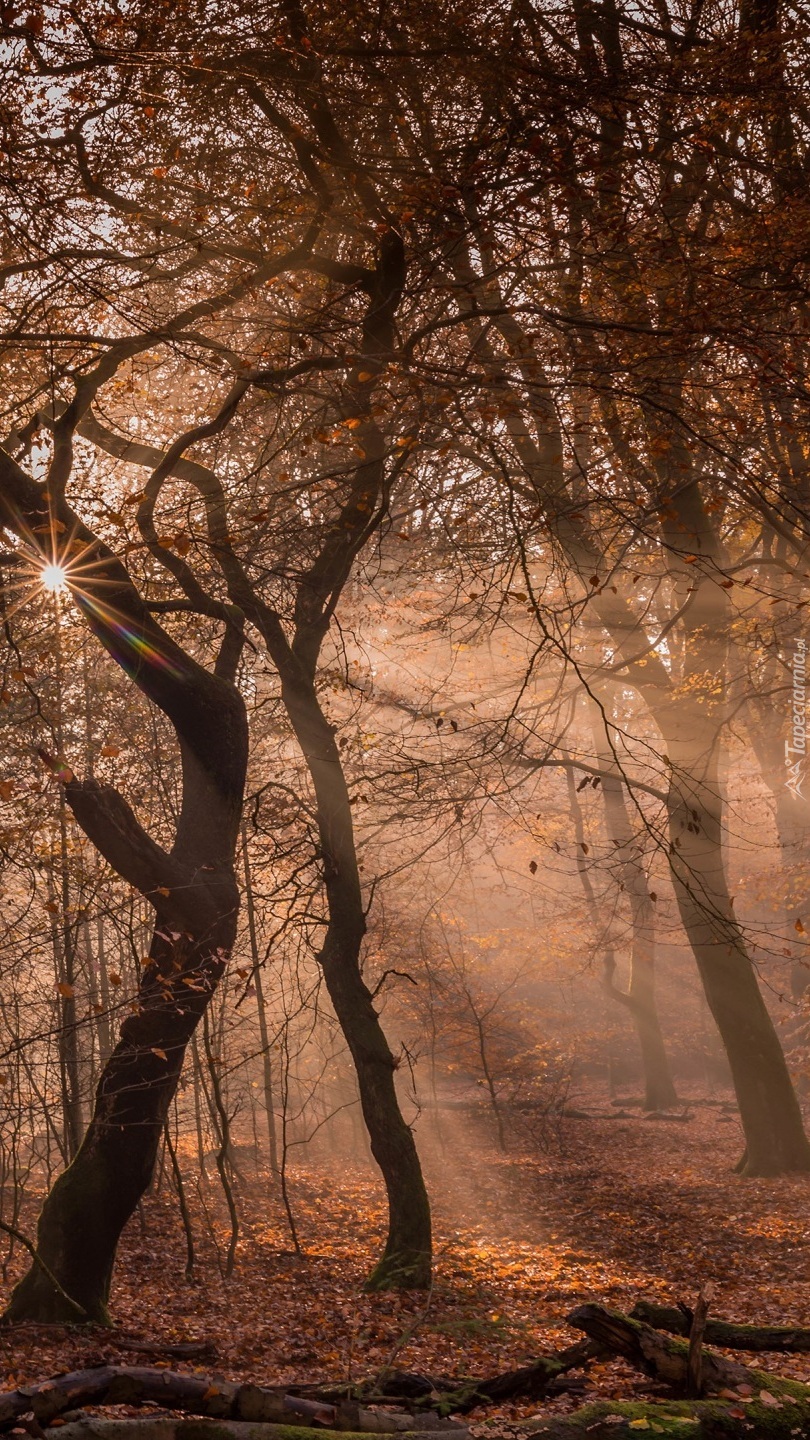 Edytor tapety: Promienie słońca wśród drzew