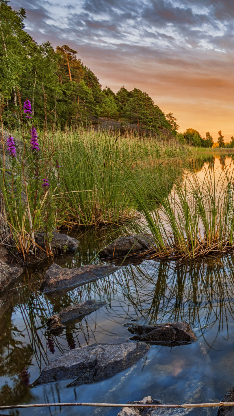 Edytor tapety: Trawy i kwiaty nad rzeką