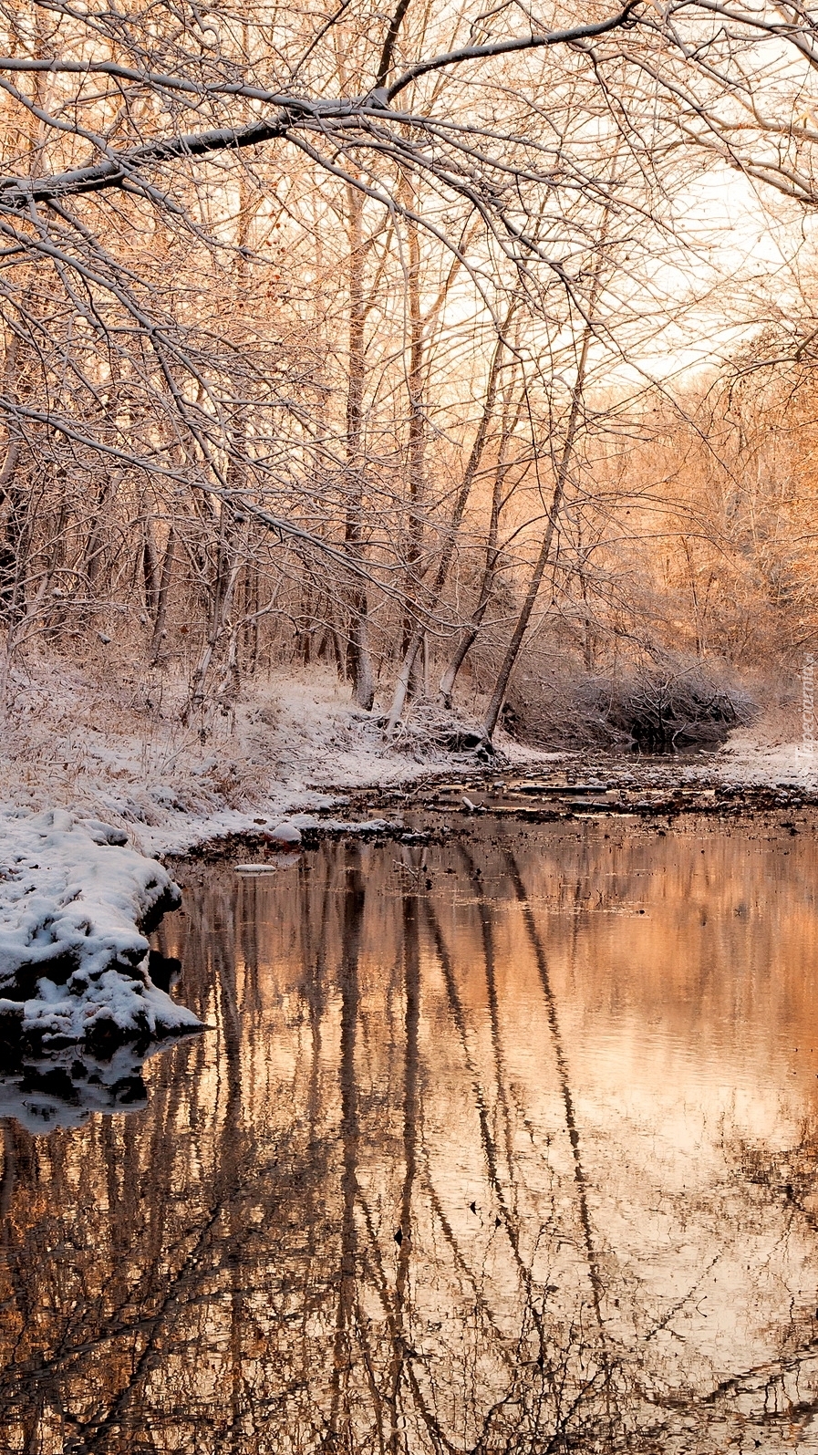Edytor tapety: Ośnieżone drzewa nad rzeką