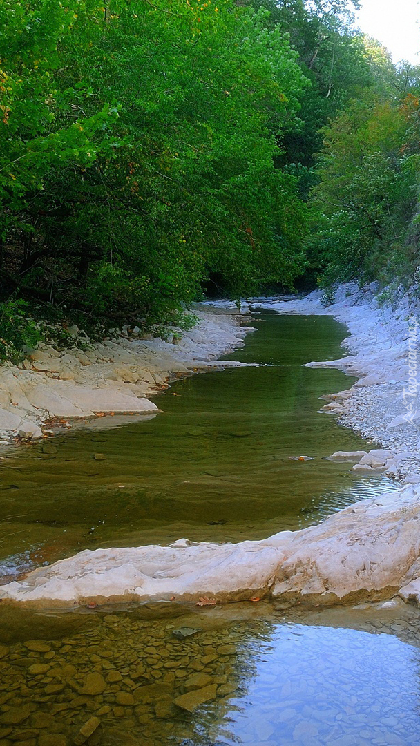 Edytor tapety: Rzeka wzdłuż zielonego lasu