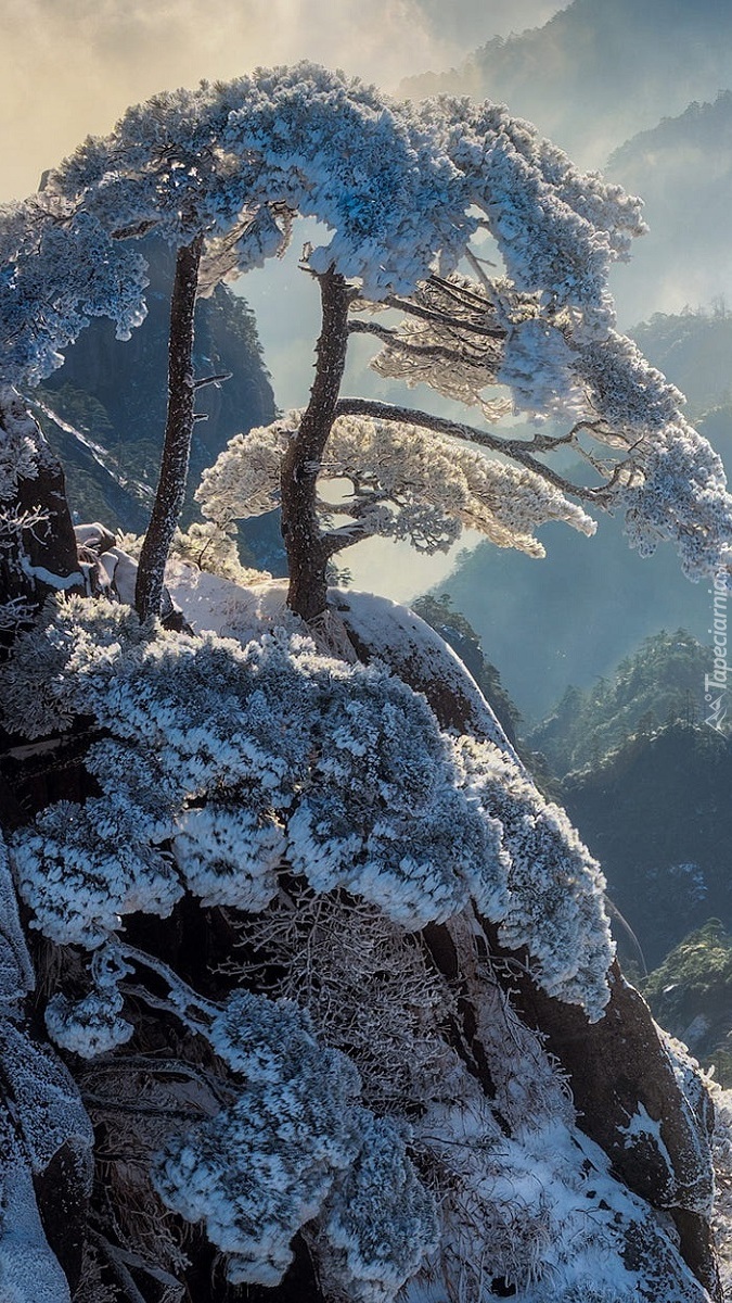 Edytor tapety: Oszronione sosny w górach Huang Shan