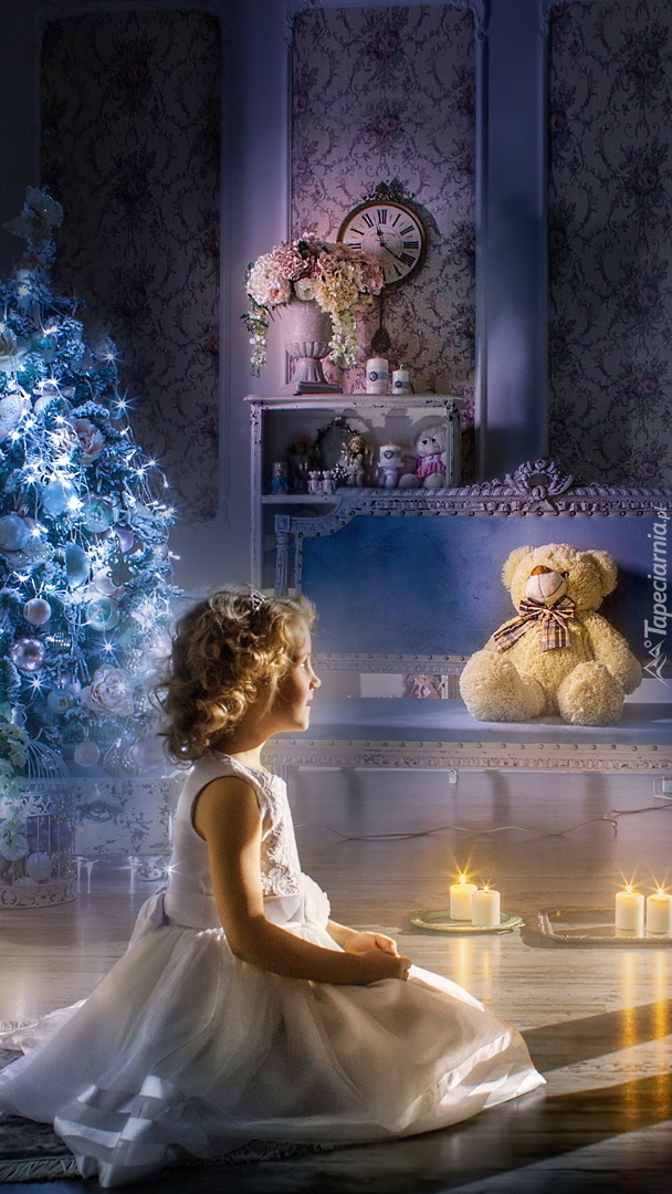 Edytor tapety: Dziewczynka obok świec i choinki