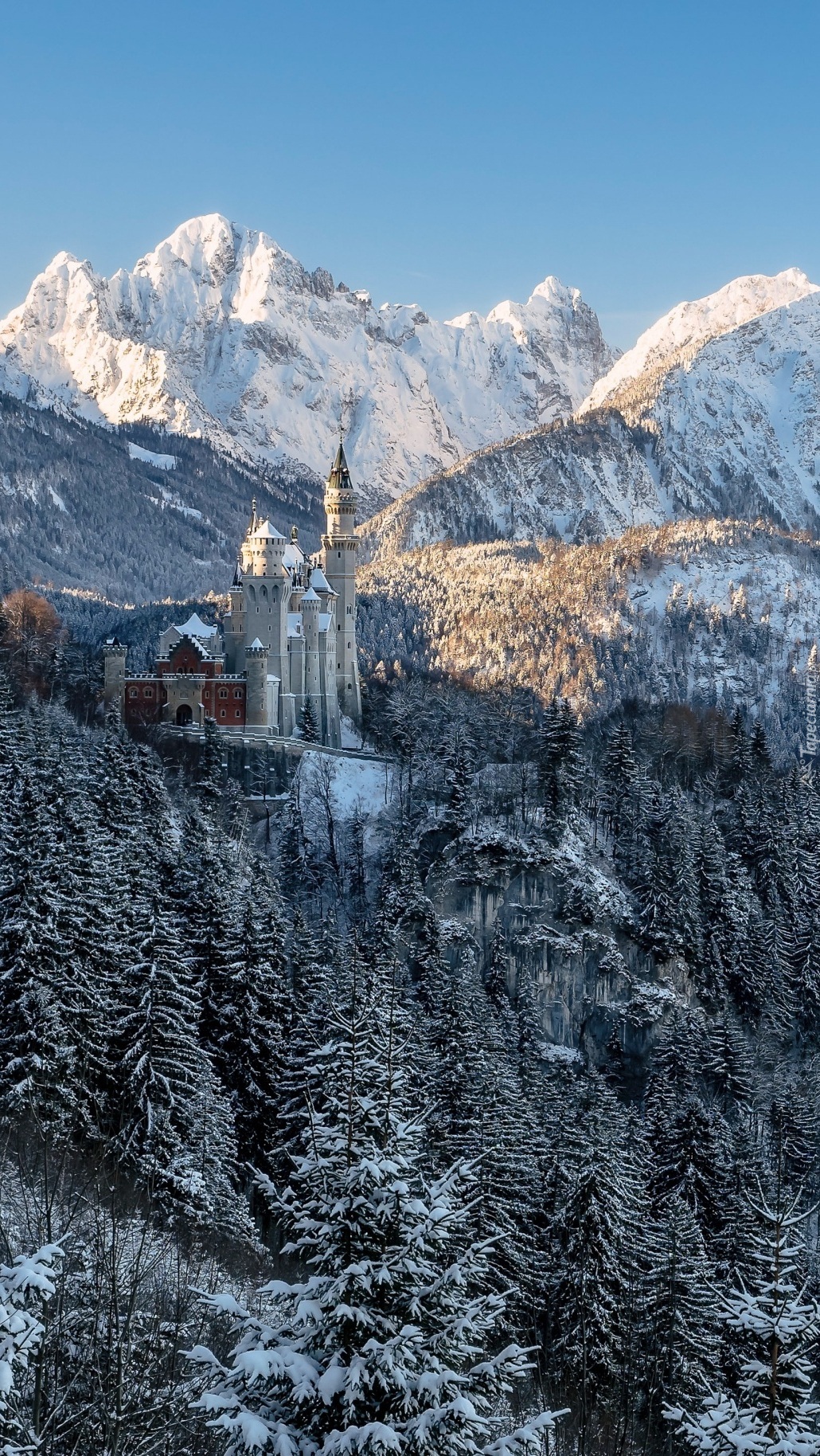 Edytor tapety: Zamek Neuschwanstein pośród drzew