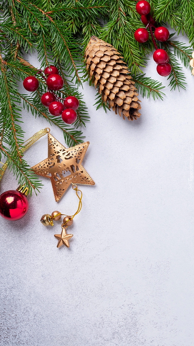 Edytor tapety: Ozdoby choinkowe na gałązkach