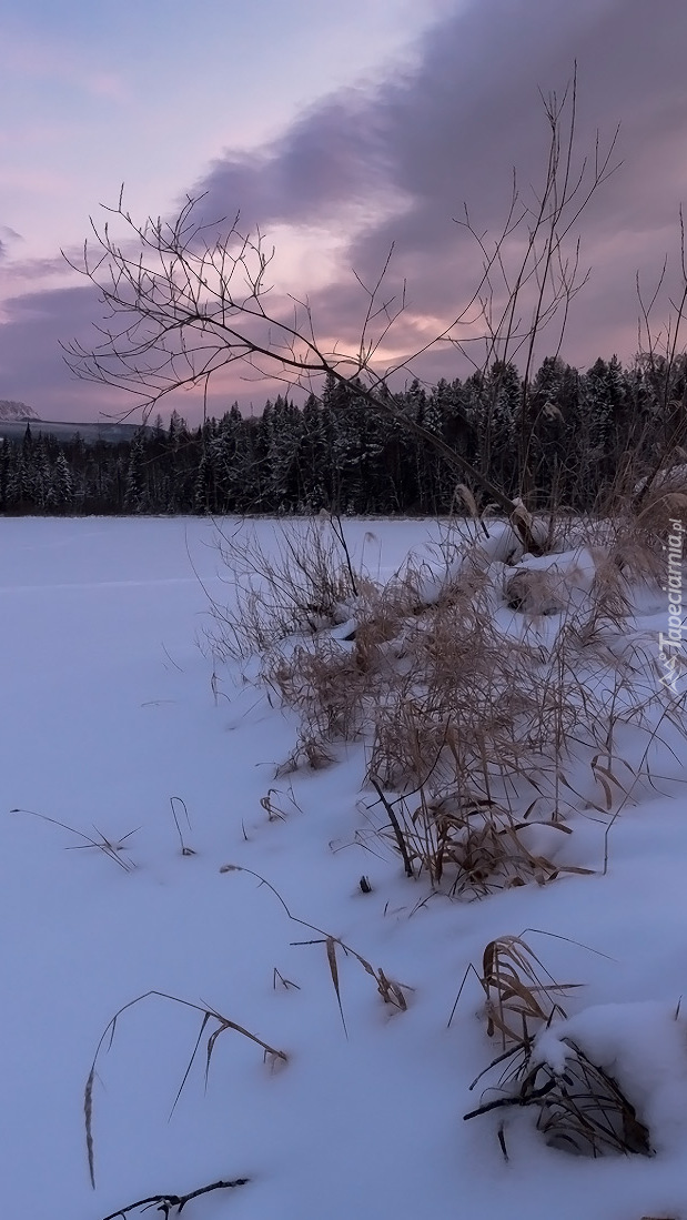 Edytor tapety: Zaśnieżone pola pod lasem
