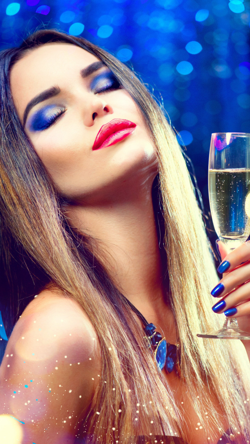 Edytor tapety: Dziewczyna z kieliszkiem szampana