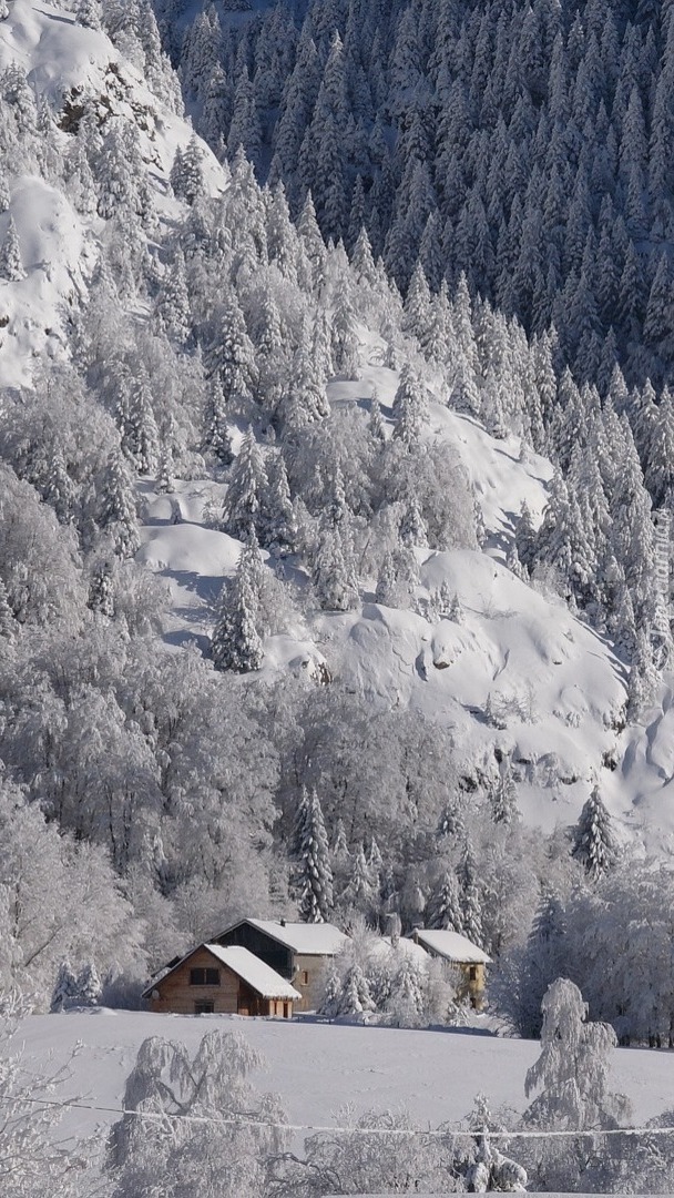 Edytor tapety: Domy pod zimowym lasem