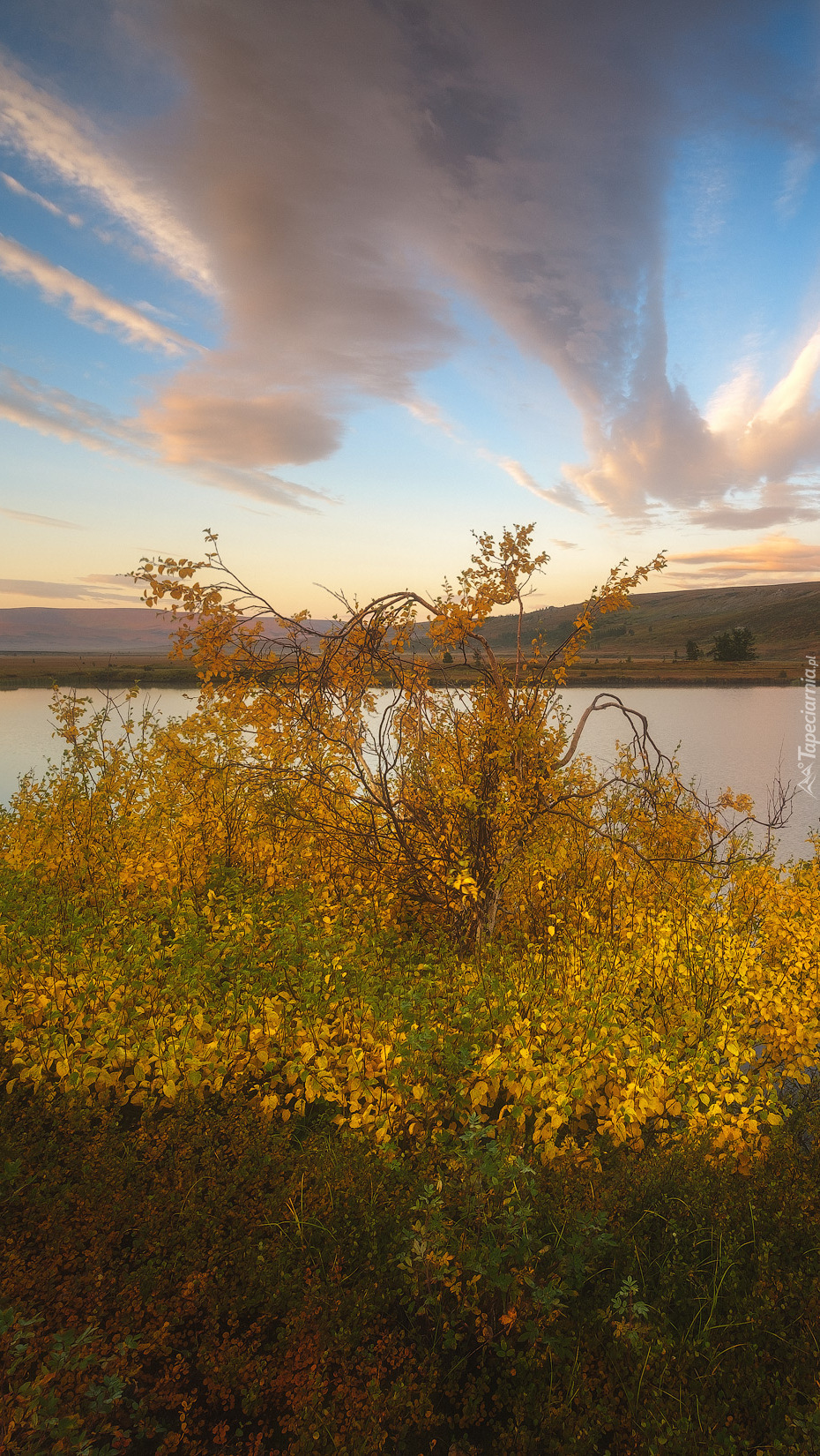Edytor tapety: Jesienne krzewy nad jeziorem