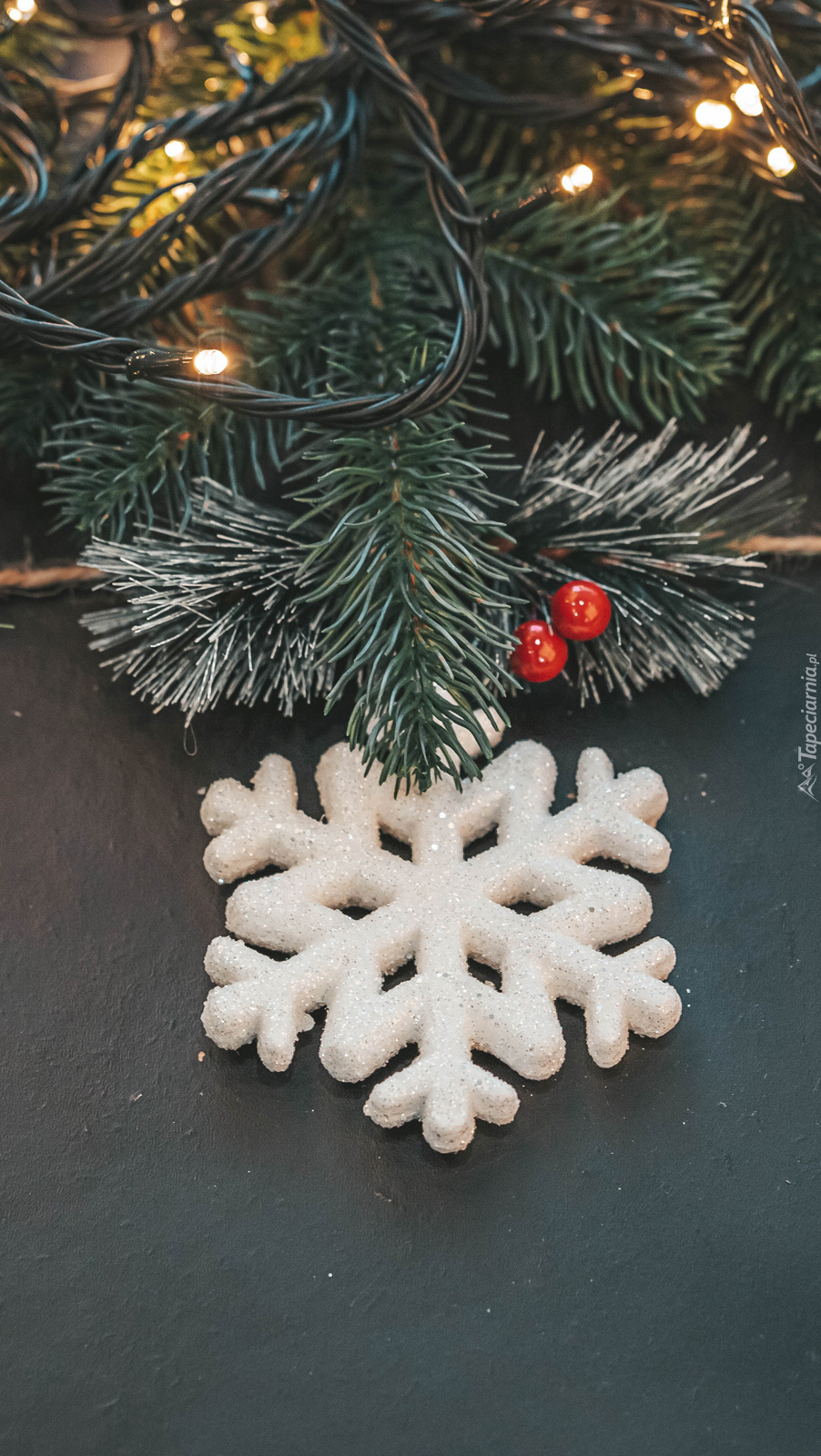 Edytor tapety: Śnieżynka przy gałązce