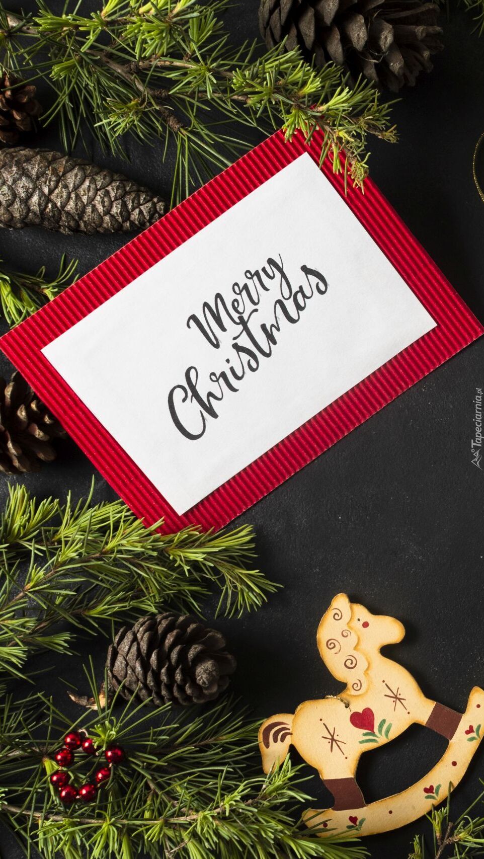 Edytor tapety: Kartka z życzeniami na gałązce choinki
