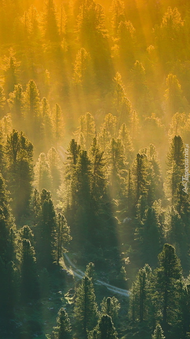 Edytor tapety: Droga w środku lasu we mgle
