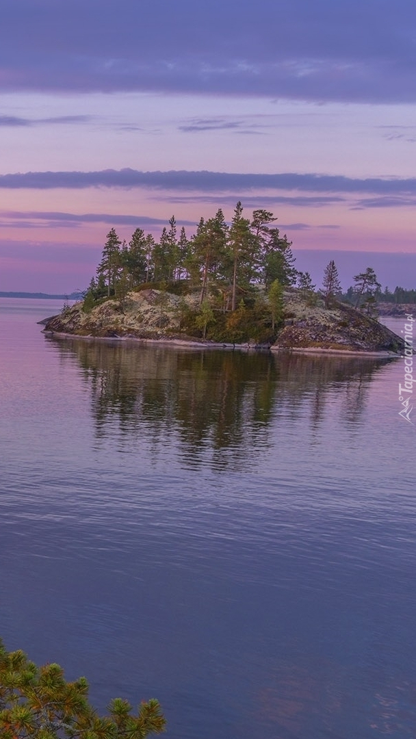 Edytor tapety: Wysepka z drzewami na jeziorze