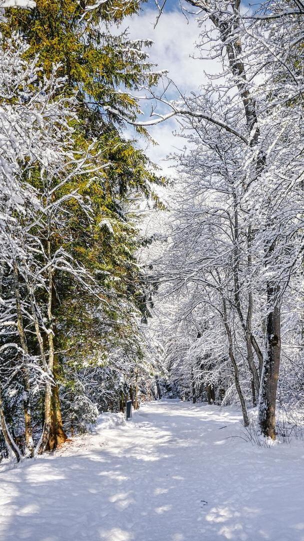Edytor tapety: Droga zasypana śniegiem w lesie