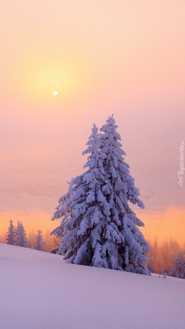 Edytor tapety: Ośnieżone świerki w głębokim śniegu