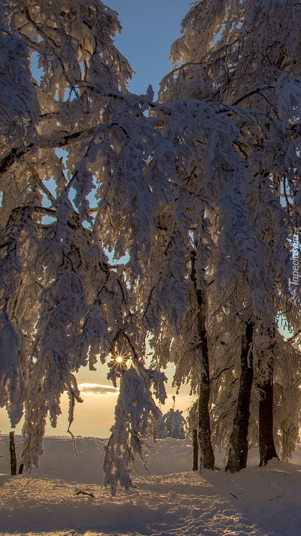 Edytor tapety: Ośnieżone drzewa w słońcu