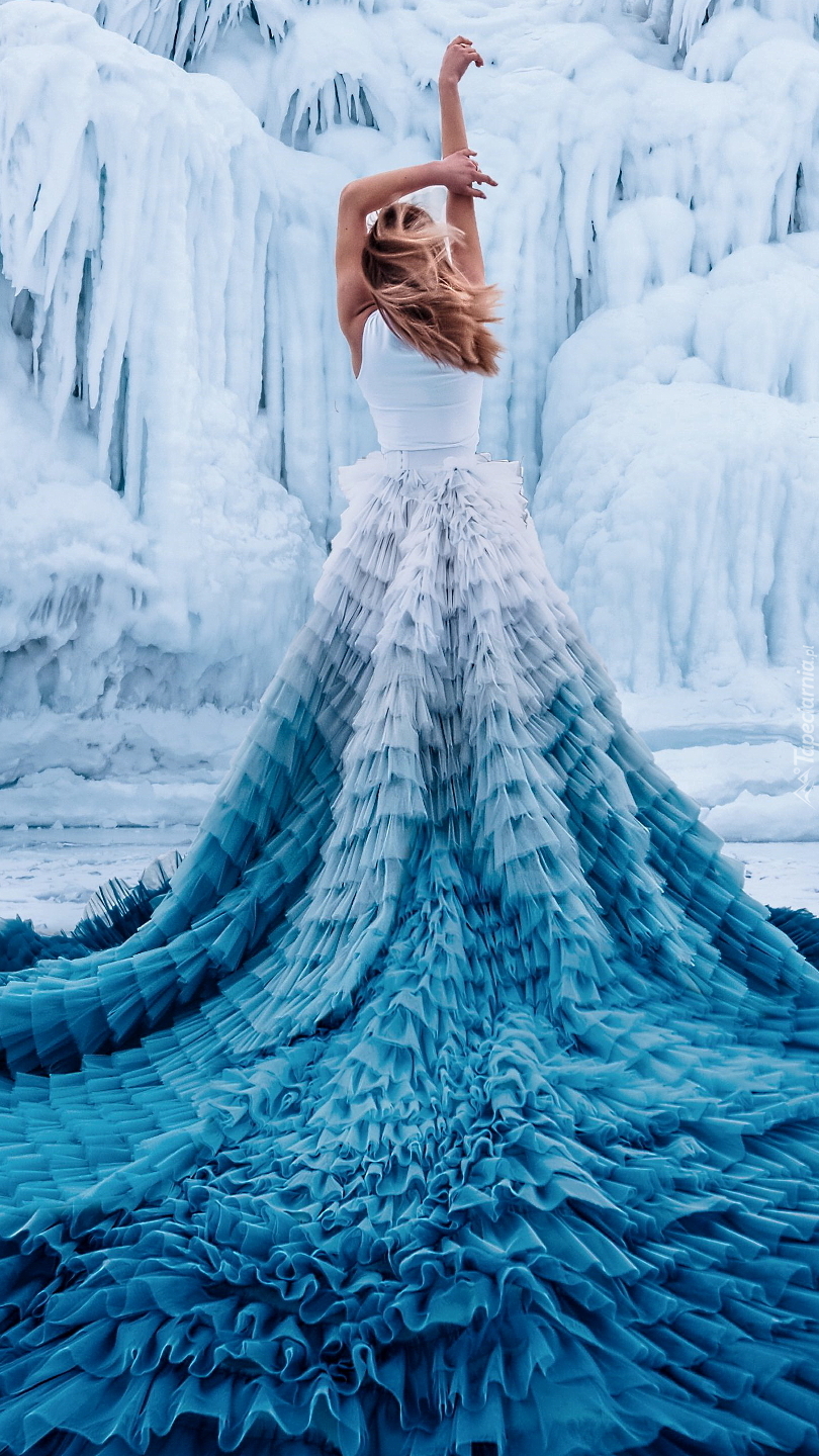 Edytor tapety: Kobieta w biało-niebieskiej sukni