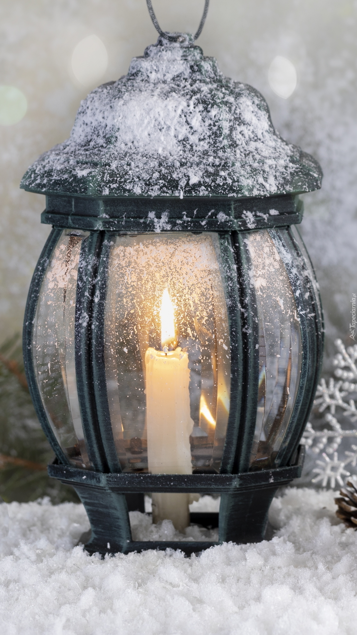 Edytor tapety: Lampion w śniegu
