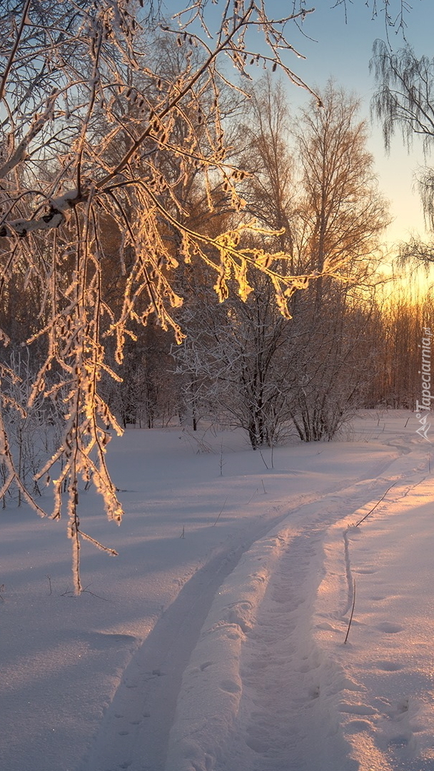 Edytor tapety: Zaśnieżona ścieżka pod drzewami