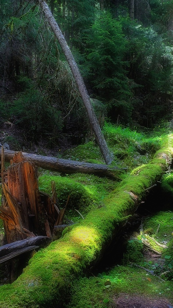 Edytor tapety: Powalone omszałe drzewa