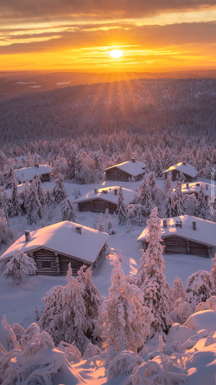 Edytor tapety: Ośnieżone domki w lasach Finlandii