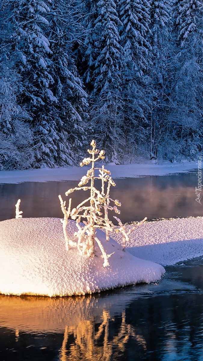 Edytor tapety: Ośnieżone rośliny na rzece