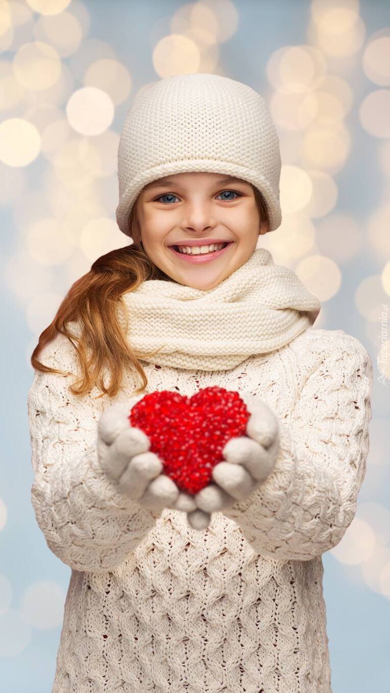 Edytor tapety: Dziewczynka trzymająca serce w dłoniach