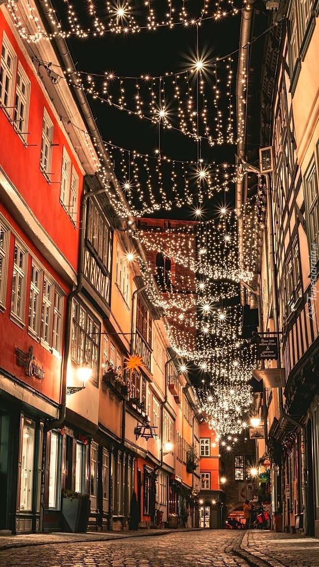 Edytor tapety: Udekorowana świątecznie uliczka