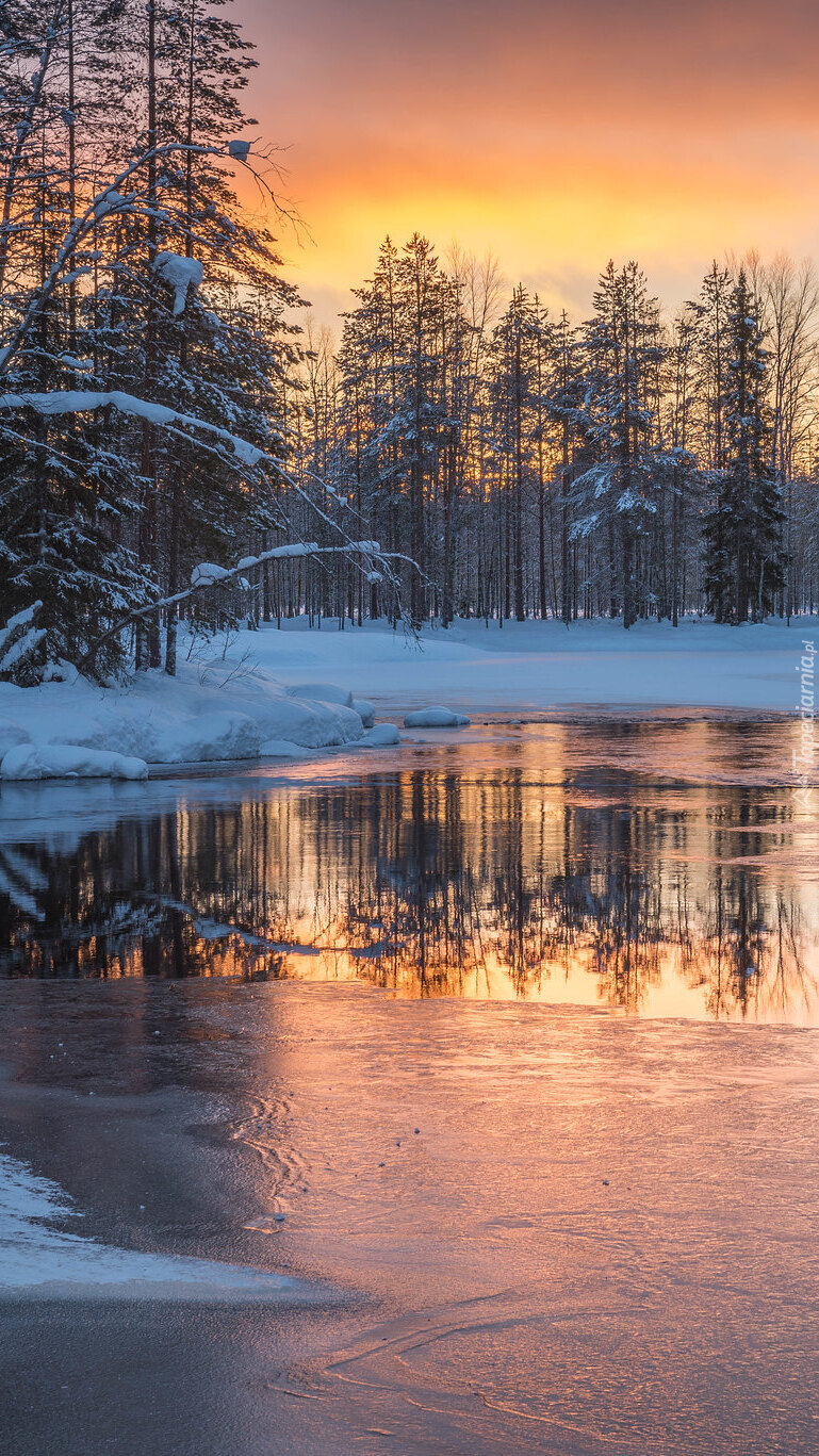 Edytor tapety: Drzewa przy zamarzającej rzece