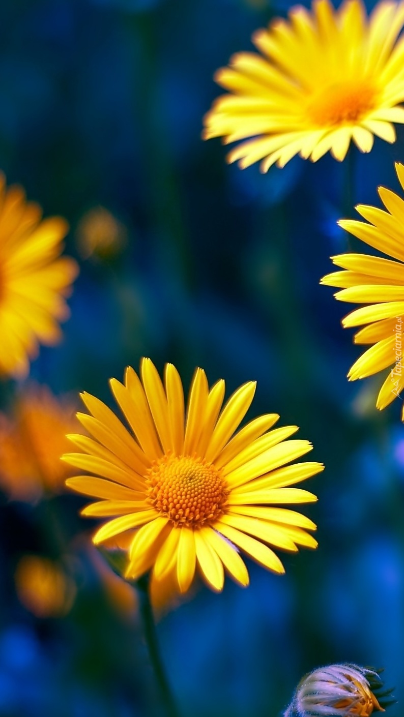 Edytor tapety: Słoneczkowe kwiaty na niebieskim tle