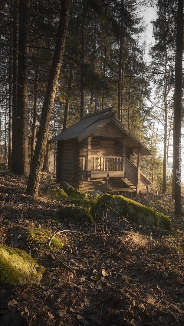 Edytor tapety: Drewniany domek w lesie