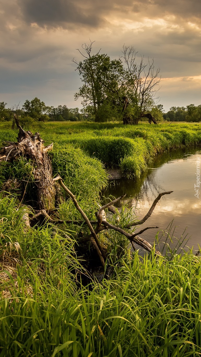 Edytor tapety: Brzeg rzeki porośnięty trawą