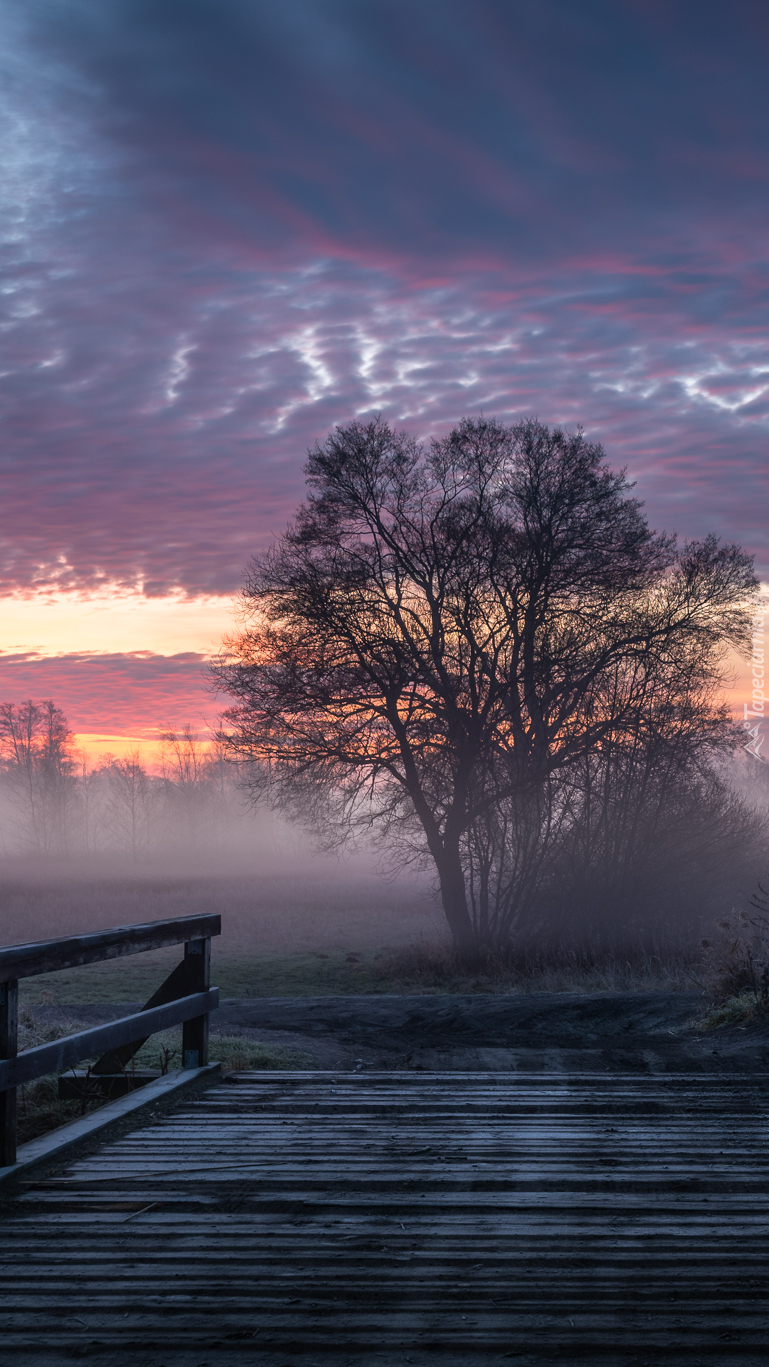 Edytor tapety: Mostek przy zamglonej łące