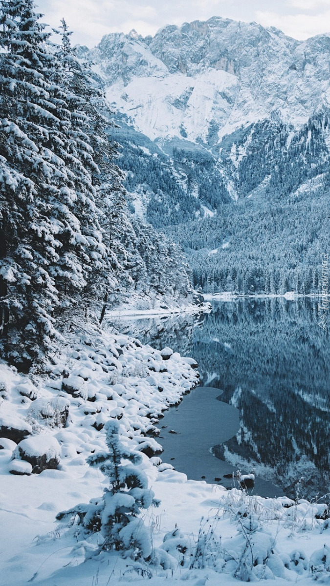 Edytor tapety: Drzewa nad jeziorem Eibsee w Niemczech
