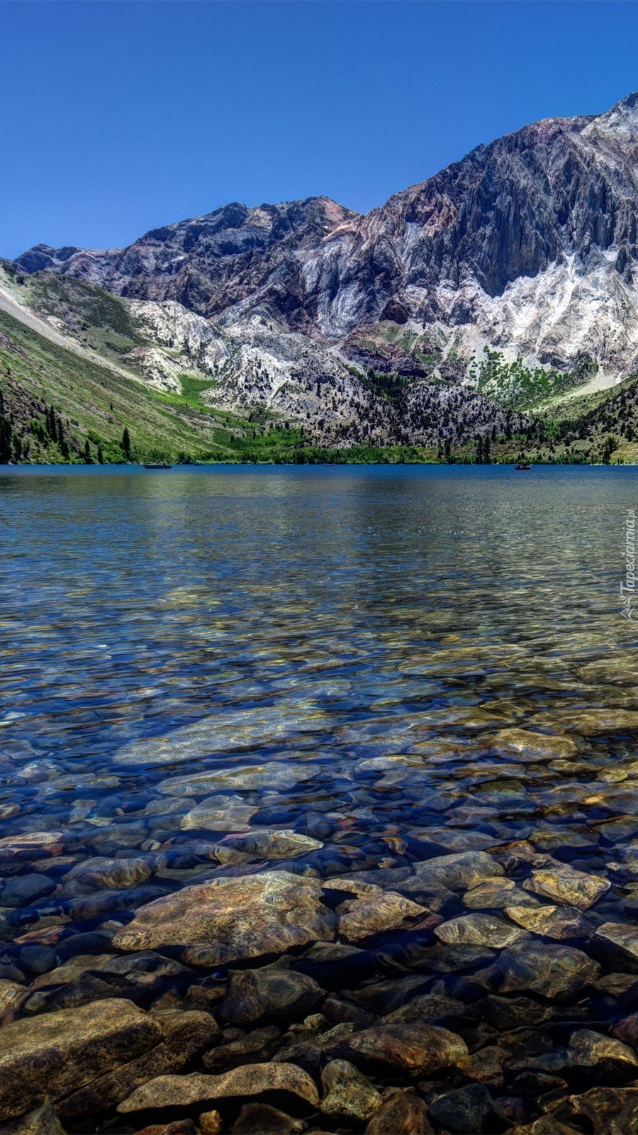 Edytor tapety: Góry nad kamienistym jeziorem