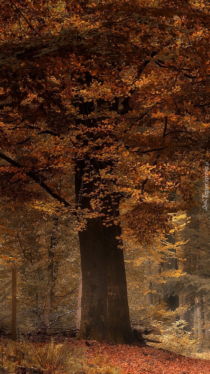 Edytor tapety: Drzewo z jesiennymi liśćmi