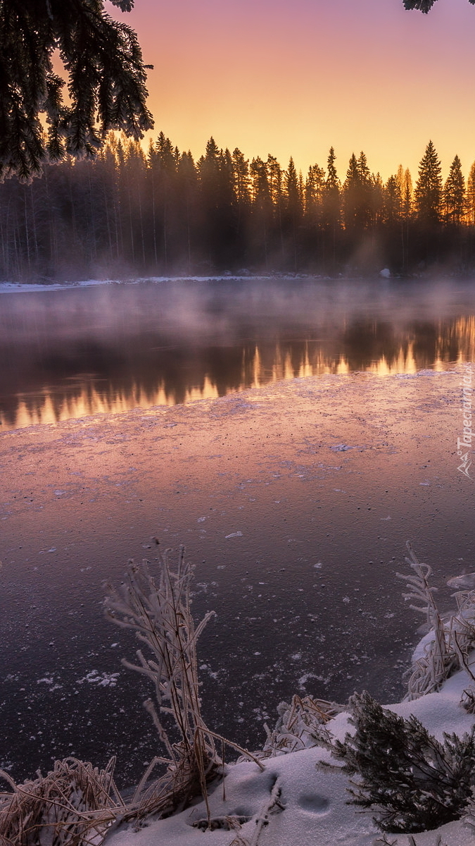 Edytor tapety: Oblodzone jezioro we mgle