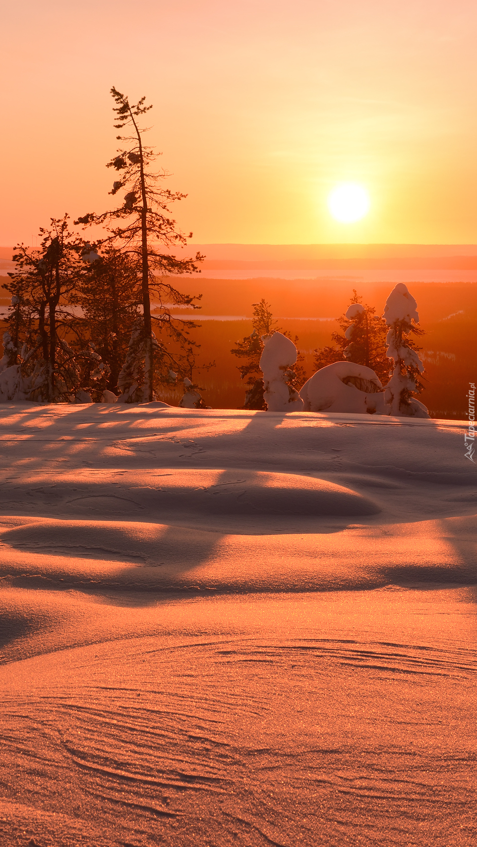 Edytor tapety: Drzewa w blasku wschodzącego słońca