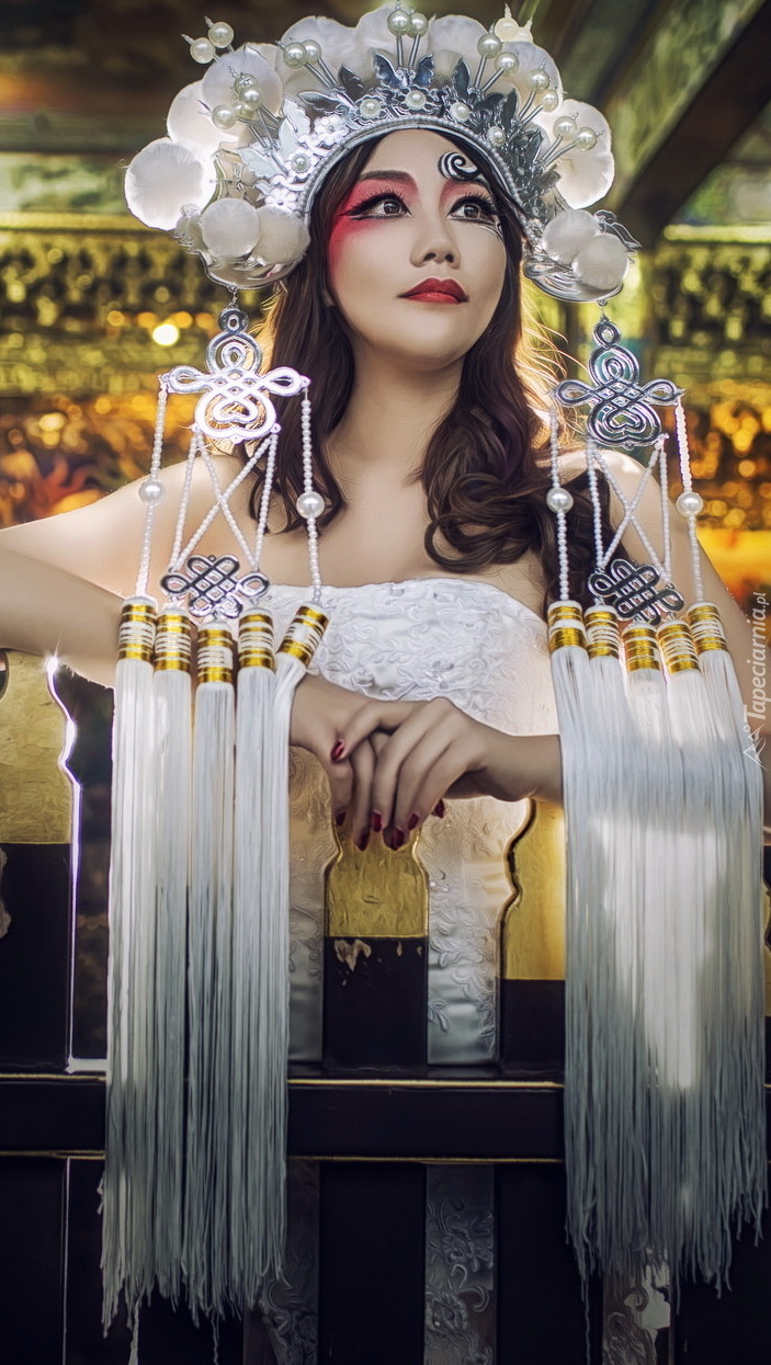 Edytor tapety: Azjatka w ozdobnym nakryciu głowy