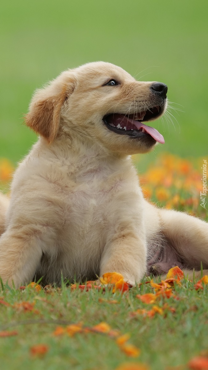 Edytor tapety: Uśmiechnięty szczeniak golden retriever