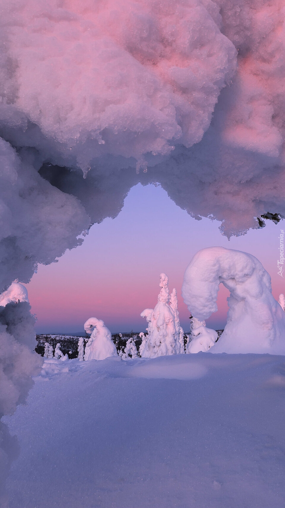 Edytor tapety: Czapy śniegu na drzewach