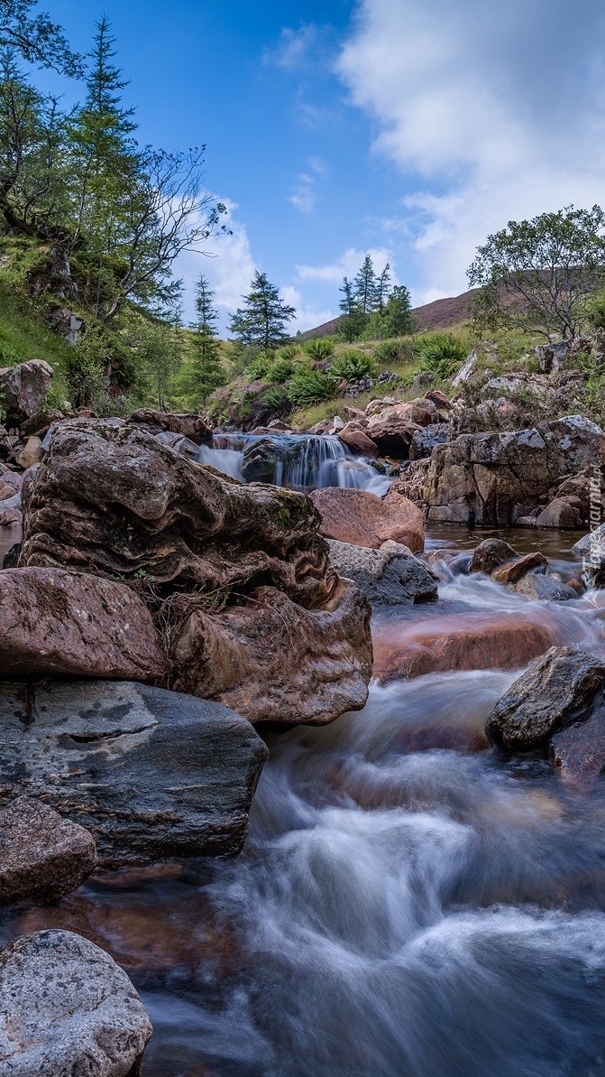 Edytor tapety: Drzewa nad kamienistym strumieniem