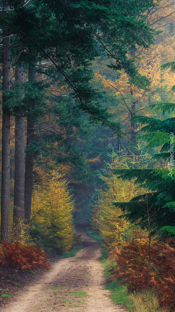 Edytor tapety: Drzewa i paprocie przy leśnej drodze