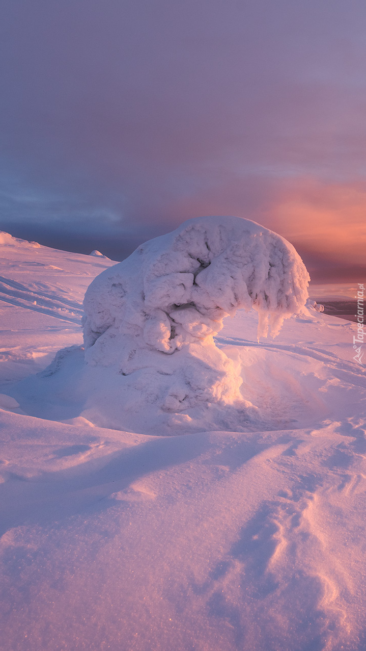 Edytor tapety: Pochylone drzewo pod ciężarem śniegu
