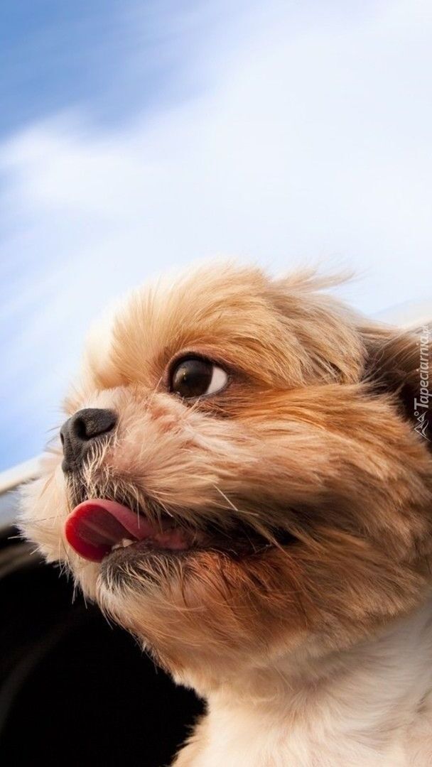 Edytor tapety: Głowa psa w otwartym oknie samochodu