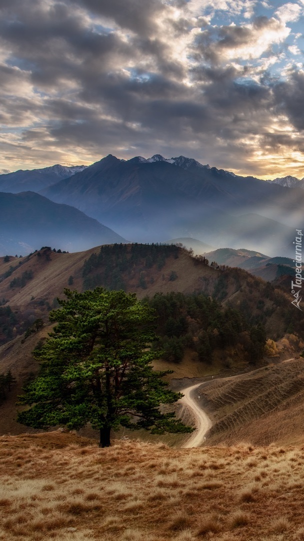 Edytor tapety: Zielone drzewo przy drodze