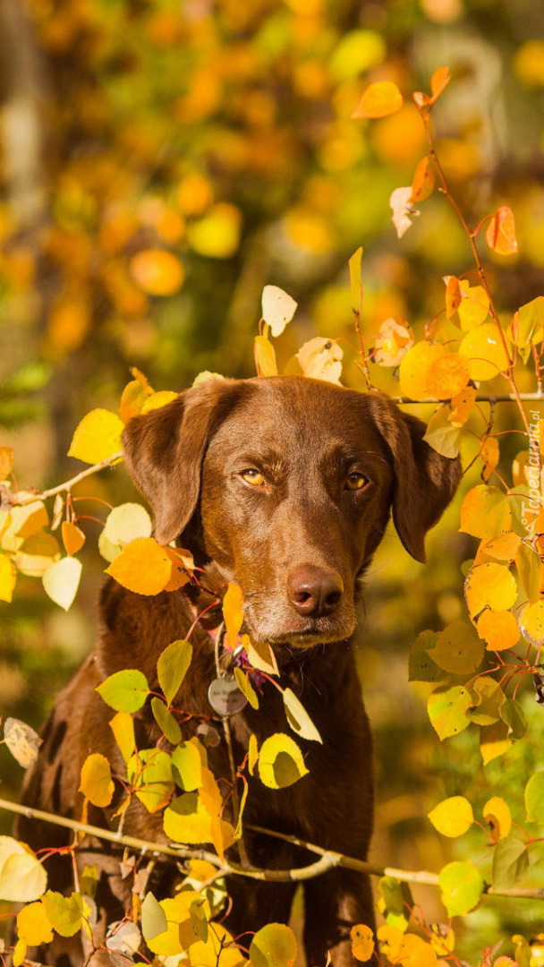 Edytor tapety: Brązowy pies w żółtych liściach